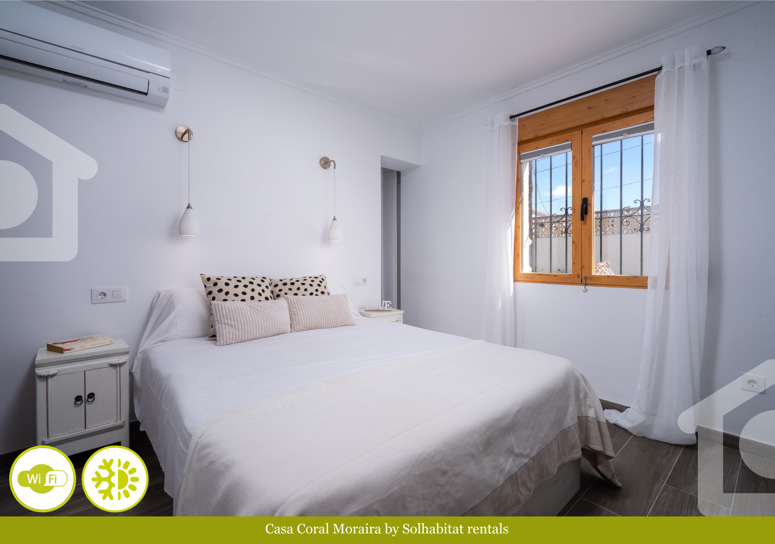 Dispone de jardín, lavadora, chimenea, plancha, acceso internet, secador, aire acondicionado, piscina privada, parking aire libre en mismo edificio, 1 Televisor.
