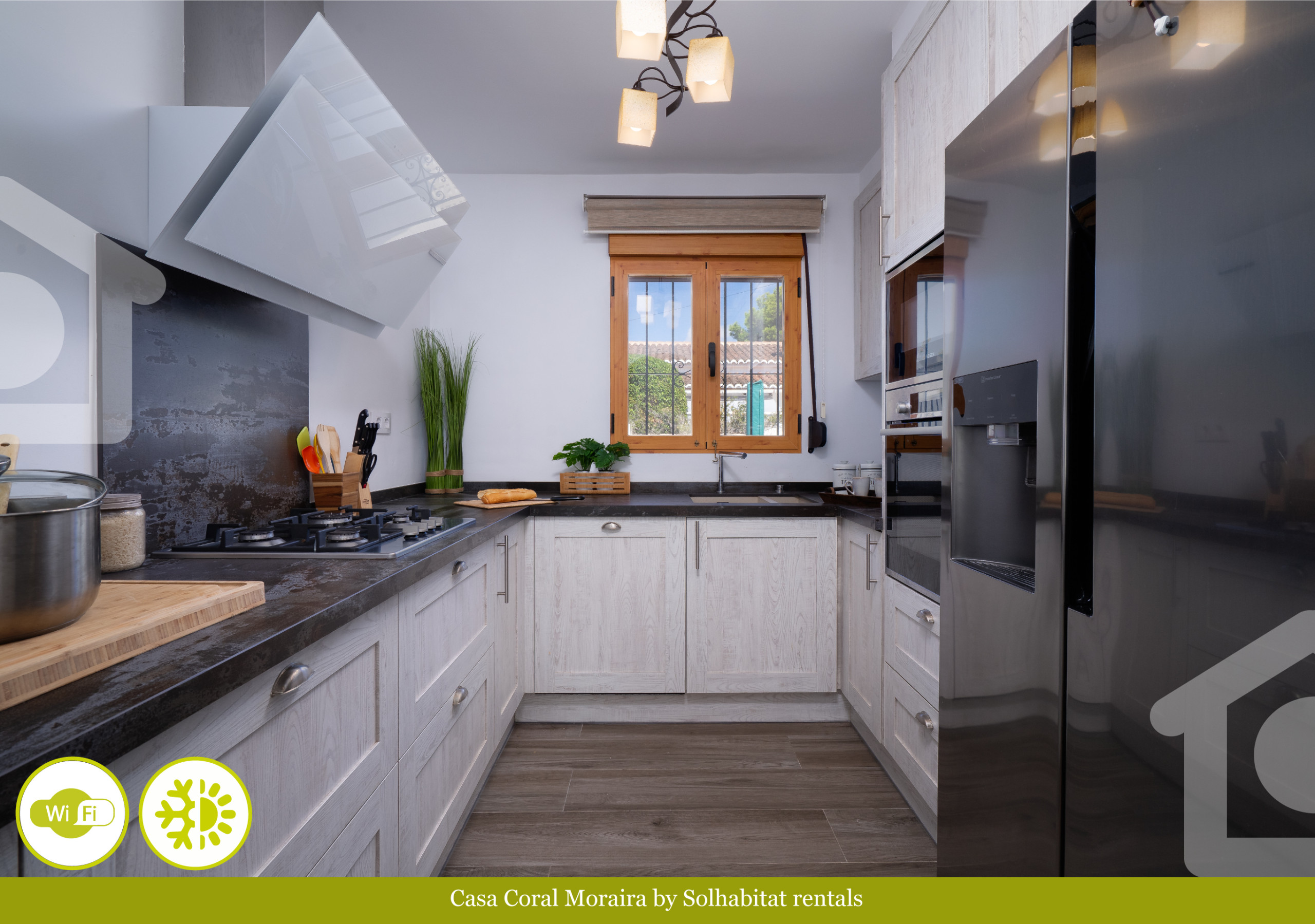 La cocina independiente, de gas, está equipada con nevera, microondas, horno, congelador, lavavajillas, vajilla/cubertería, utensilios/cocina, cafetera y tostadora.