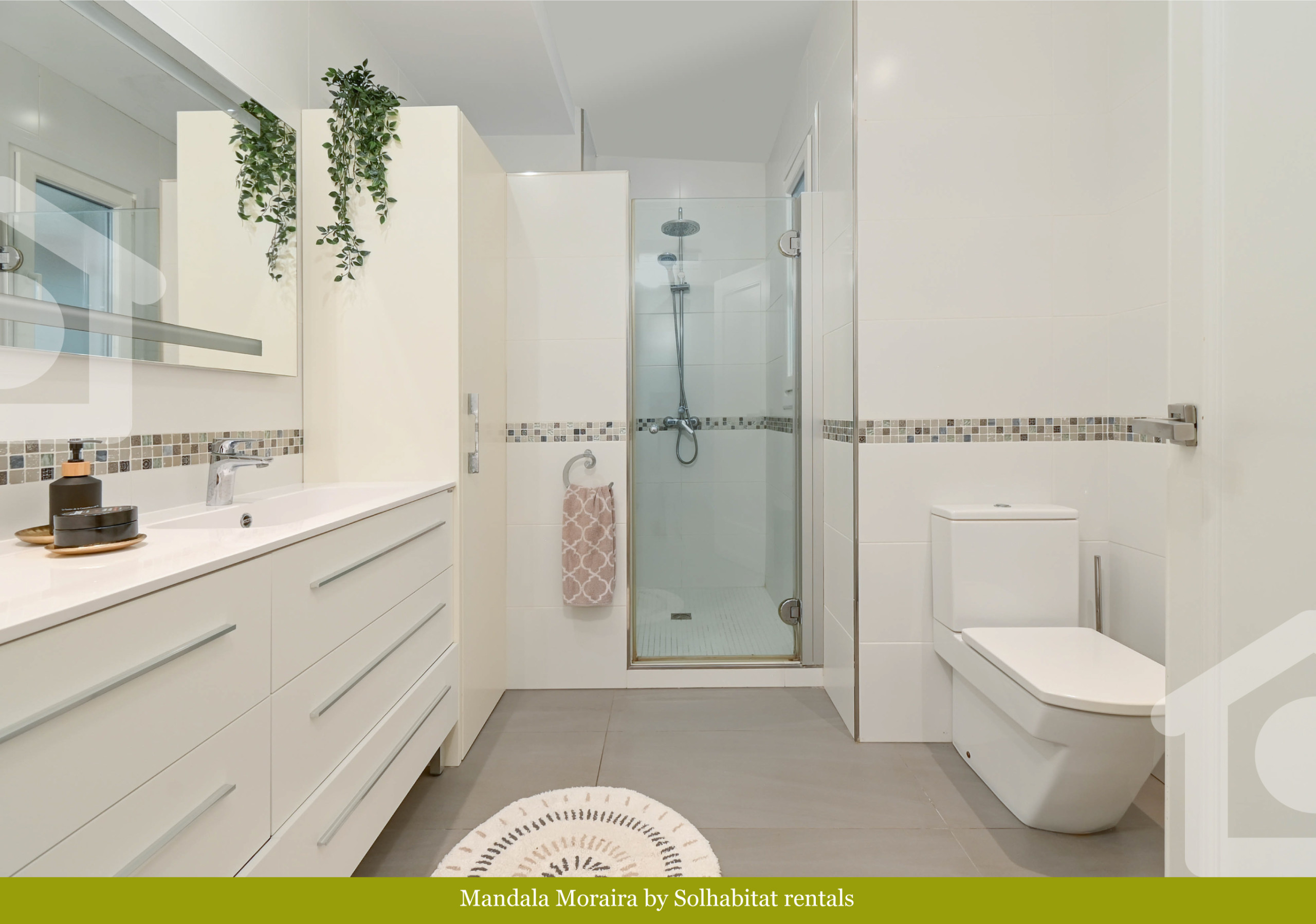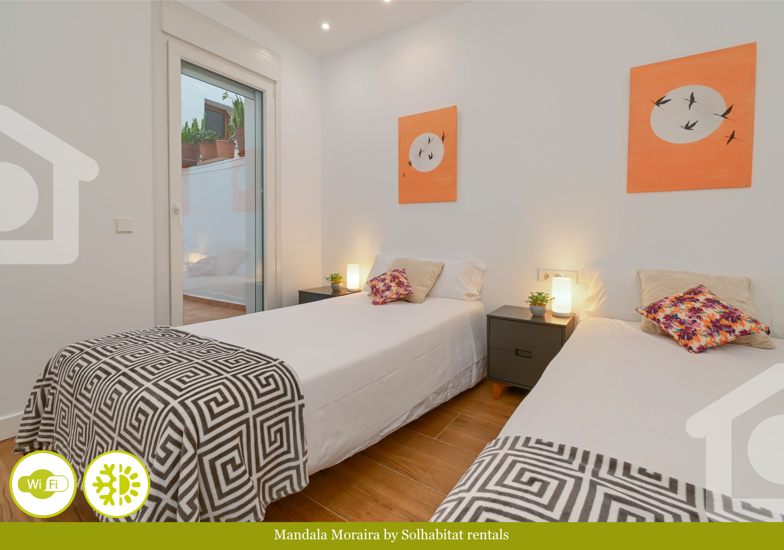 El apartamento cuenta con 4 dormitorios decorados con un estilo mediterráneo suave y relajante, donde predominan los tonos neutros y los detalles cuidados. Cada habitación está pensada para ofrecer descanso y bienestar, y la capacidad total para 8 personas lo convierte en un espacio perfecto para familias o grupos de amigos. Los dos baños, ambos con ducha y diseño actual, aportan funcionalidad y confort.