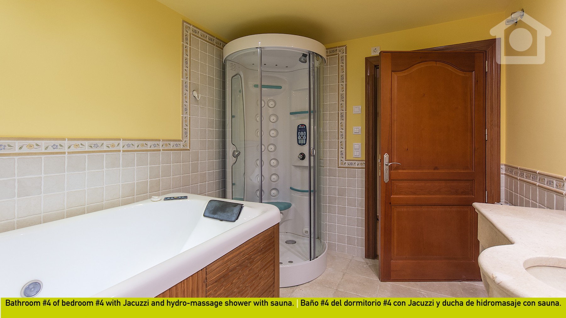 In einem privateren Teil des Stockwerkes befinden sich 3 Schlafzimmern. Zimmer #1 verfügt über ein elegantes Badezimmer En suite und über einen Kleiderschrank. Das Badezimmer des Zimmers # 2 befindet sich im Korridor. Zimmer #3 verfügt über einen Badezimmer En suite und über einen Kleiderschrank. Im unteren Stockwerk, ein ruhiger Bereich des Hauses, befinden sich die 2 anderen Zimmer, die durch einer Tür kommunizieren können, um eine große Familiensuite zu bilden. Das Badezimmer der Kammer 4 verfügt über einen Jacuzzi und über eine Dusche mit Sauna. Zimmer #5 verfügt über einen Badezimmer en suite und einen grossen Kleiderschrank. Die Hauptür des Hauses und die Garage befinden sich auch auf diesem Stockwerk.