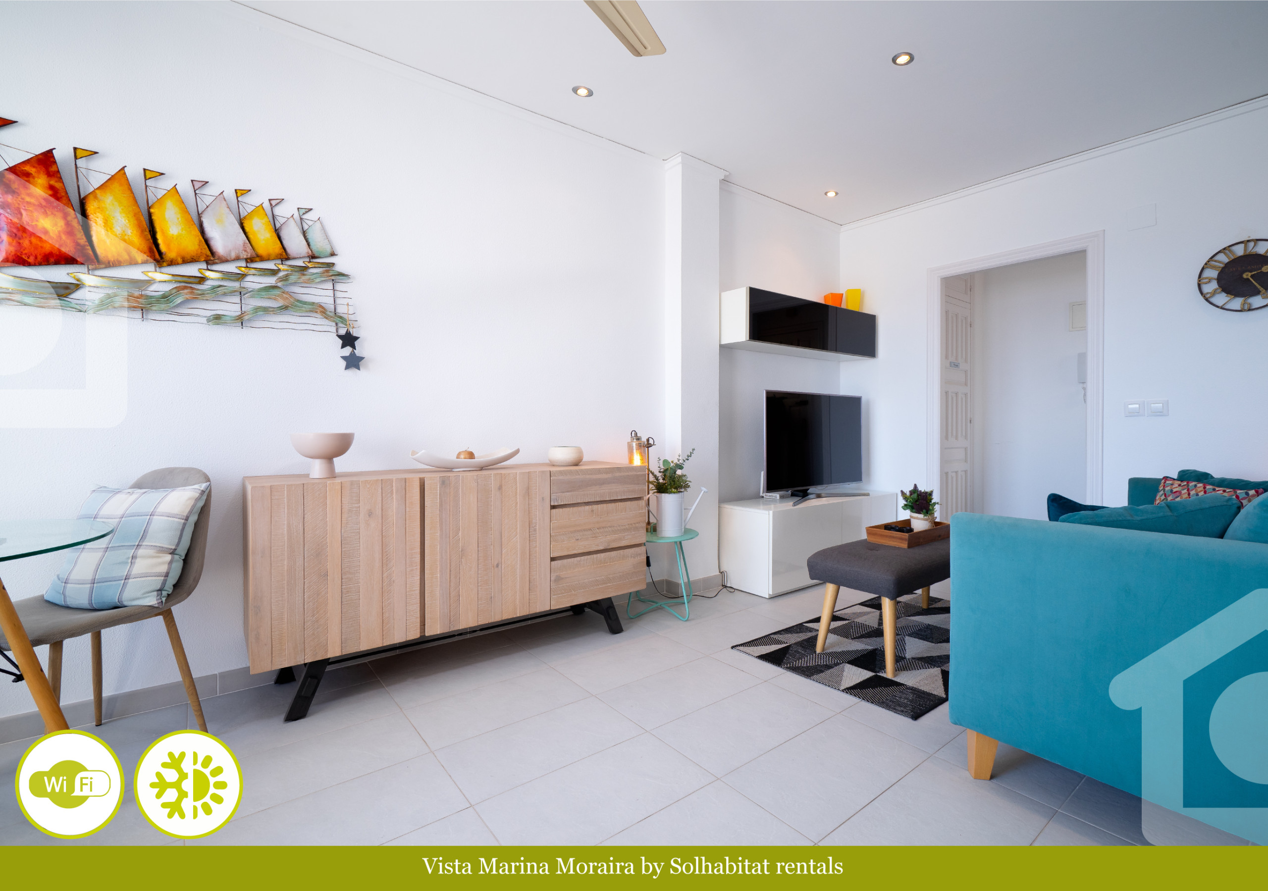 Zu den Annehmlichkeiten gehört die Klimaanlage, die an den heißesten Tagen für eine angenehme Kühle sorgt, sowie eine charmante private Terrasse, auf der man Momente der Entspannung mit atemberaubenden Blicken auf das Meer und den Hafen von Moraira genießen kann. Die Wohnung bietet außerdem schnelles WLAN, Smart-TV und praktische Annehmlichkeiten wie ein Bügeleisen.