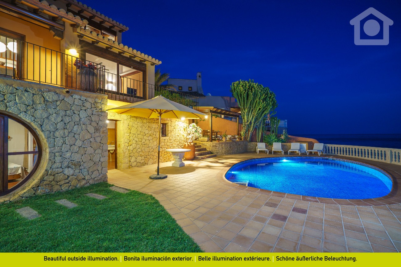 Diese fantastische Luxus Villa liegt tatsächlich in einer glanzvoller Stelle,DIREKT AM STRAND. Den kleinen Fischerdorf Moraira für seine schöne Strände und kristallinisches Meer bekannt, ist nur fünf Minuten von dem Haus entfernt.