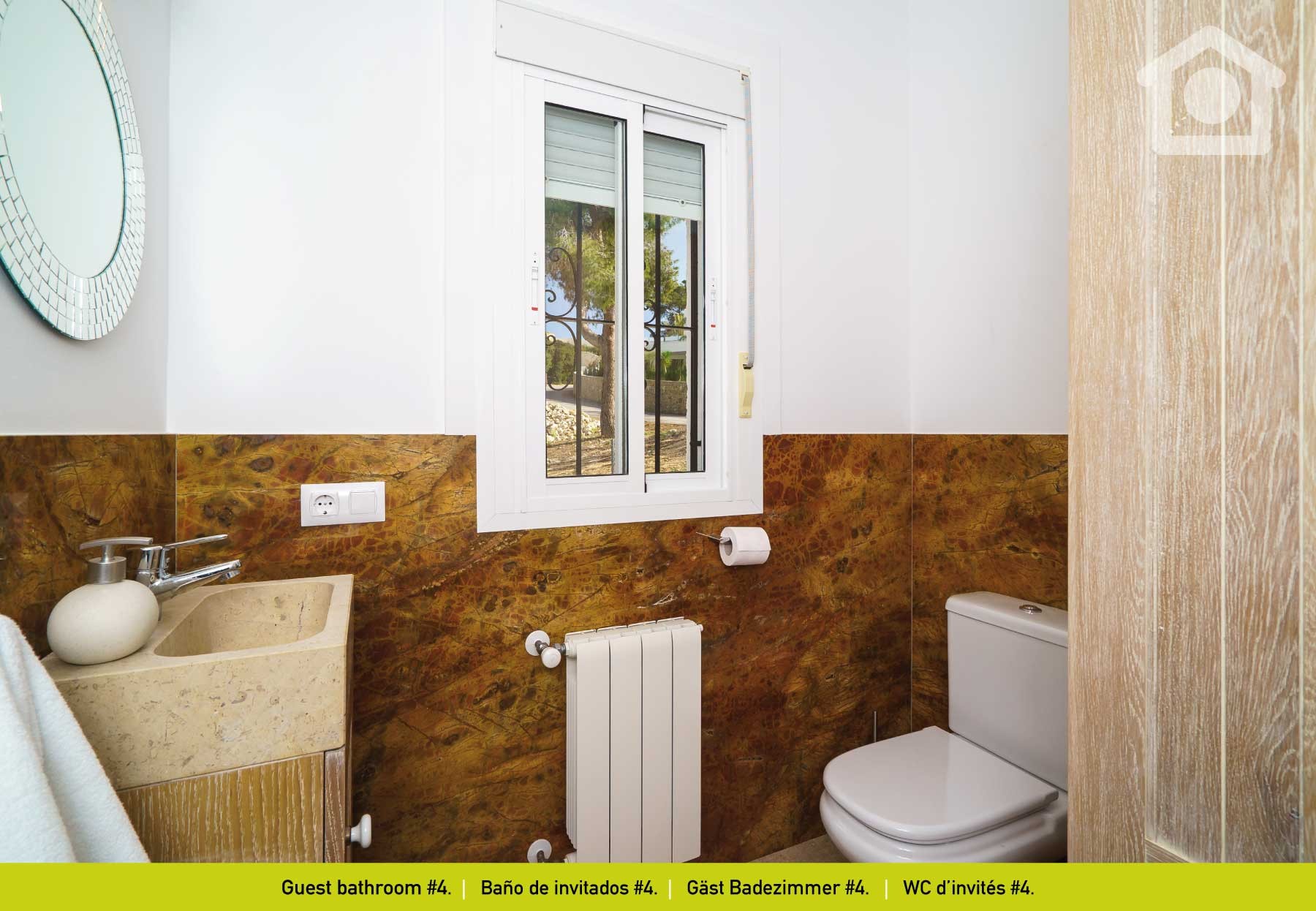 Von der Eingangshalle haben Sie auch Zugang zum Zimmer #1 und zu Schlafzimmer # 4 mit 2 Einzelbetten nebeneinander, Klimaanlage und direktem Zugang zur Terrasse. Daneben befindet sich das Badezimmer #1 mit Badewanne.