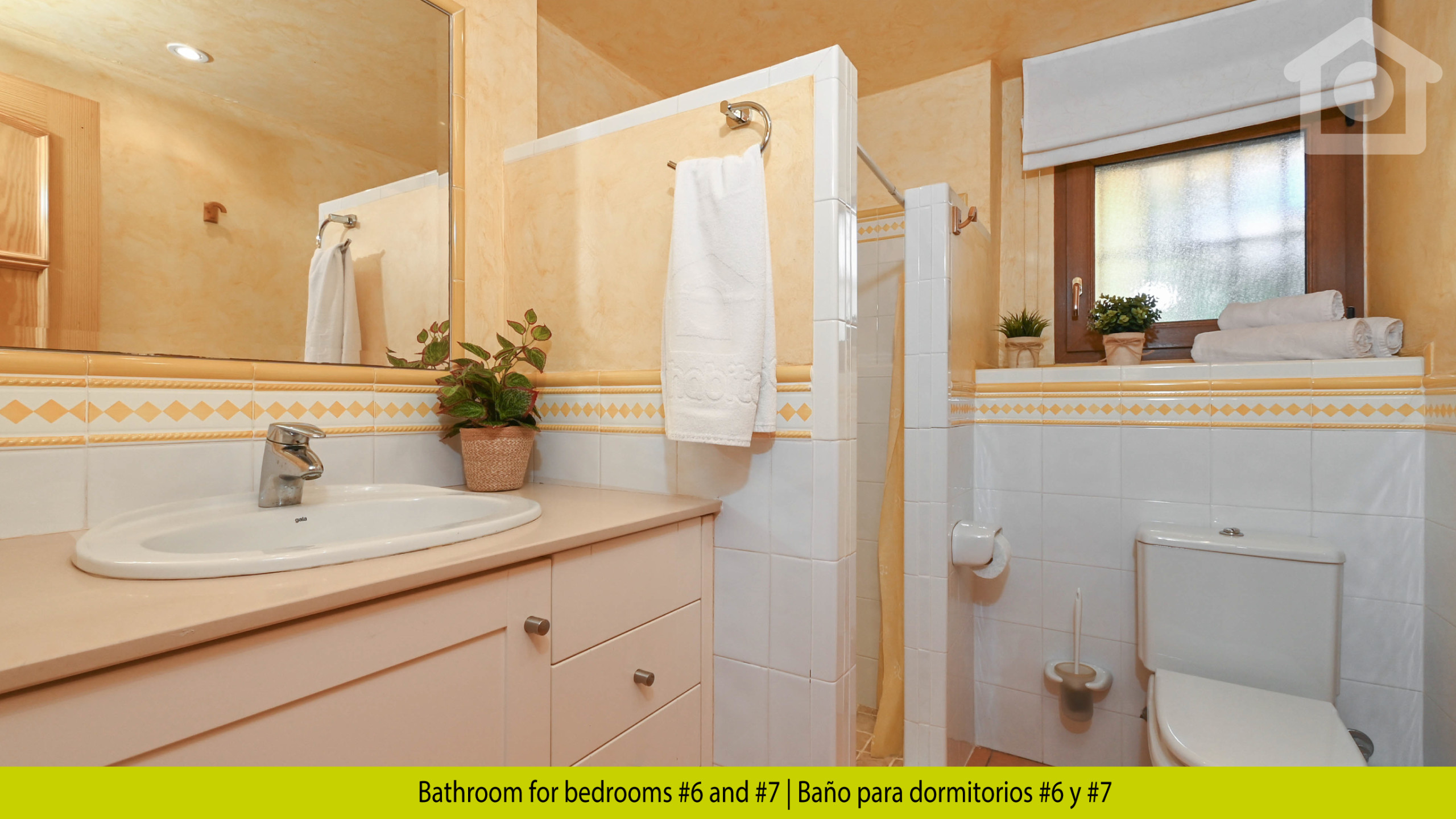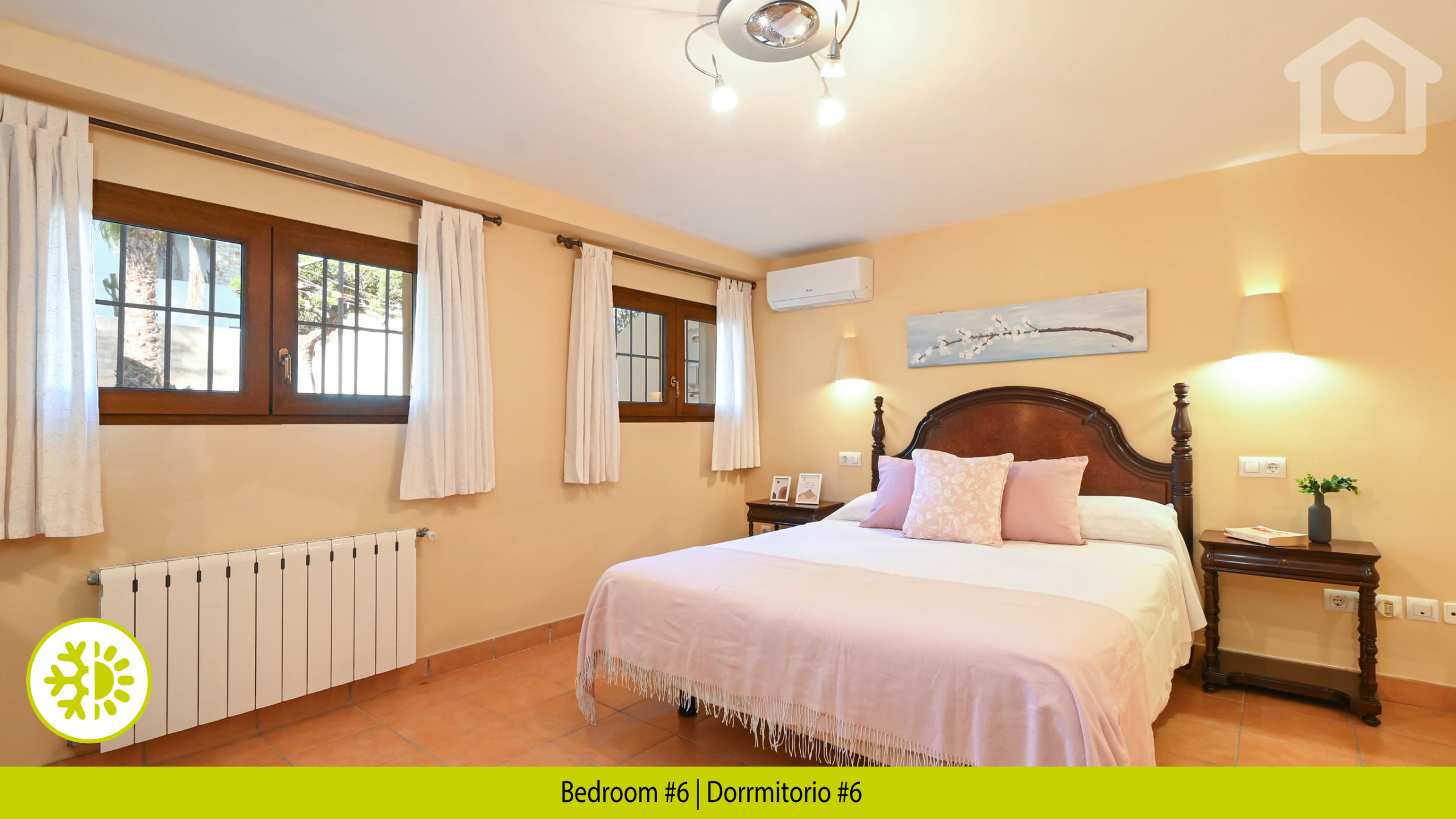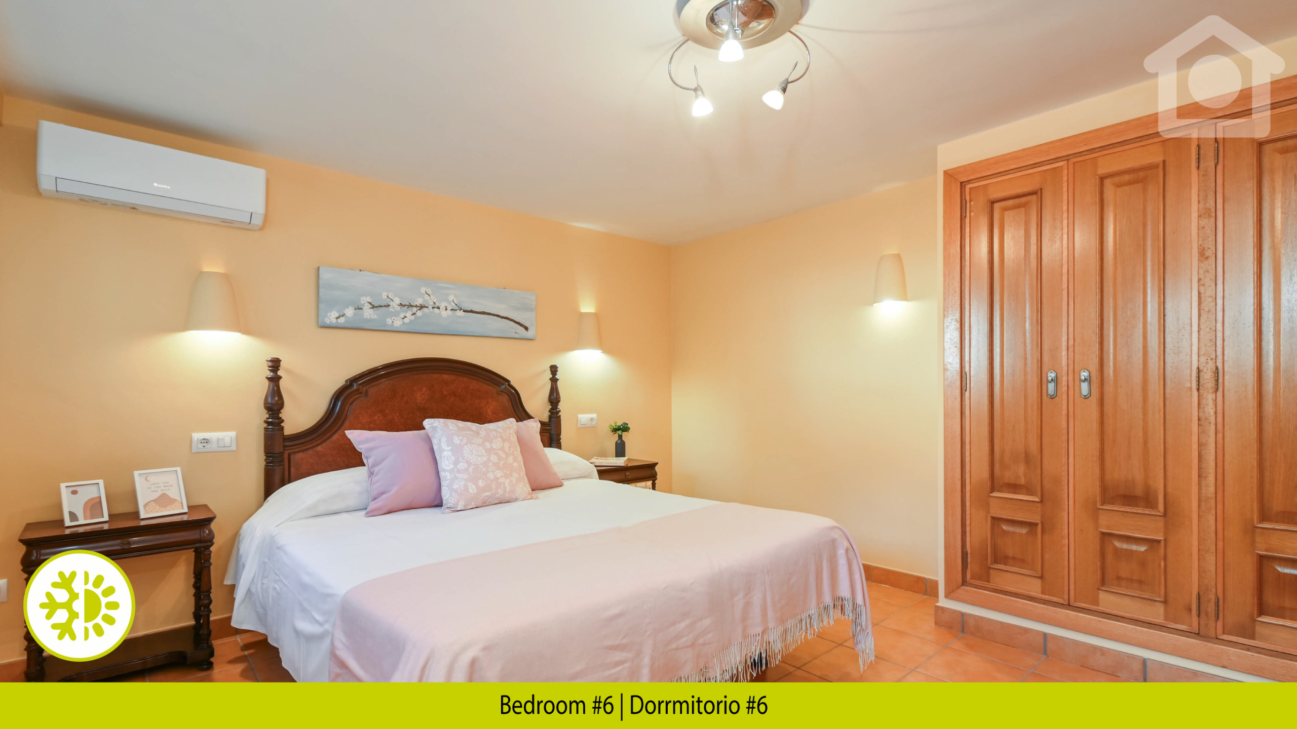 In einem privateren Bereich des Hauptgeschosses befinden sich drei Schlafzimmer in einem Gang. Schlafzimmer #1 verfügt über ein elegantes Badezimmer en suite und einen geräumigen Ankleideschrank. Schlafzimmer #2 verfügt über ein externes Badezimmer. Schlafzimmer #3 verfügt über ein Badezimmer en suite und einen Ankleideschrank. Im Erdgeschoss, in einem sehr ruhigen Bereich des Hauses, befinden sich die anderen drei Schlafzimmer. Die Schlafzimmer #4 und #5 können durch eine Tür verbunden werden, um ein großes Familienschlafzimmer zu bilden. Neben Schlafzimmer #4 befindet sich ein Badezimmer mit Dusche. Schlafzimmer #5 verfügt über ein Badezimmer en suite und einen geräumigen Ankleideschrank. Schlafzimmer #6 ist ein Familienschlafzimmer mit einem Doppelbett, einem Einzelbett und einem Badezimmer en suite mit Dusche. Im Erdgeschoss befindet sich auch die Haupteingangstür der Wohnung und die Garage.