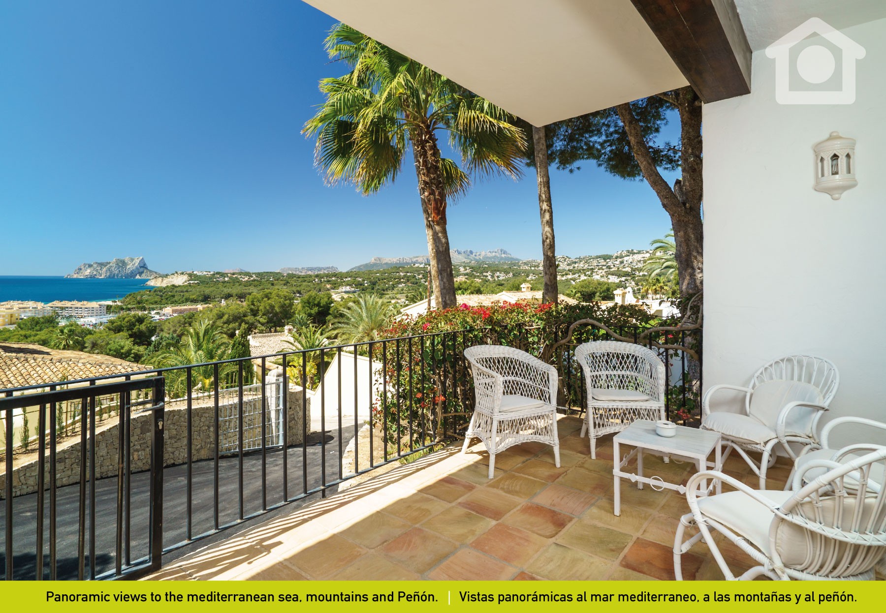 Located on the top of a small hill, our holiday rental villa Sunny Hill awaits. Its stunning panoramic views of the Mediterranean Sea, the mountains, and the imposing Peñón de Ifach will surprise you. Situated in a quiet and safe urbanisation next to Moraira, the distance to the town is just 800 metres and can be reached on foot in less than 15 minutes. You can enjoy the fantastic beaches of Moraira without having to take the car!