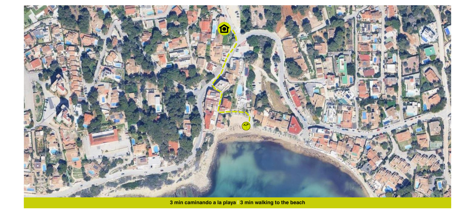 Baie de Portet bénéficie d'un emplacement privilégié, pratiquement en première ligne de mer. En seulement 3 minutes de marche, vous atteindrez la plage d'El Portet, réputée pour son sable fin, ses eaux cristallines et son ambiance détendue. Le centre de Moraira se trouve à environ 1 km, accessible à pied ou en voiture, offrant une agréable promenade le long de la mer et une large offre de restaurants, de commerces et de services.