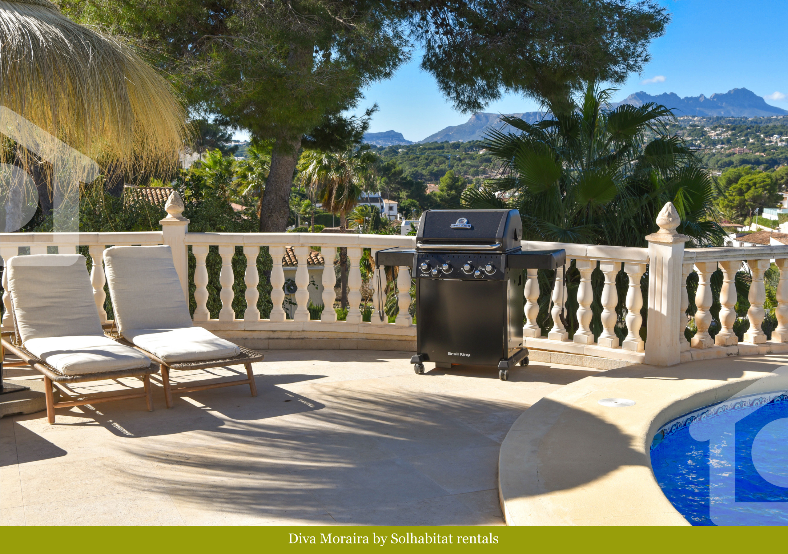 Finalement, il est important de mentionner que Villa Diva dispose d'une piscine privée et de grandes terrasses offrant une vue panoramique sur les montagnes, avec plusieurs zones de repos pour prendre des bains de soleil. La villa dispose également d'un barbecue intégré avec 2 zones de repas, dont l'une est couverte, le tout entouré d'un jardin bien entretenu.