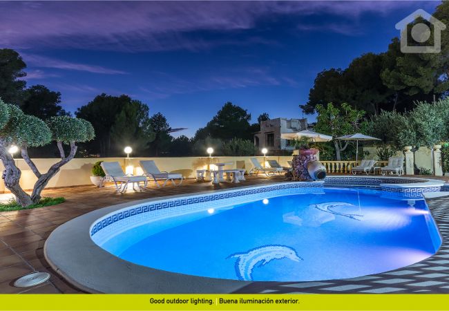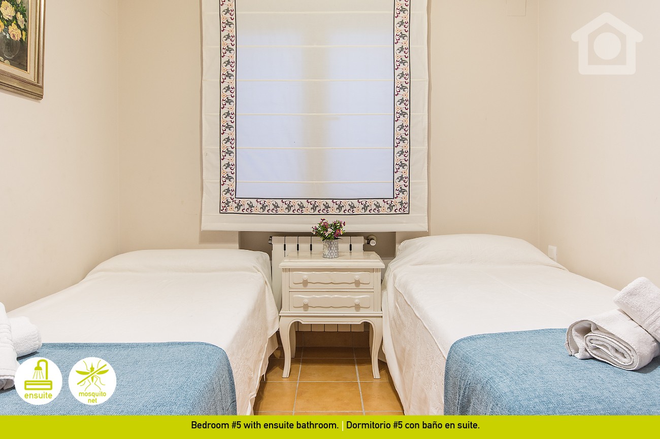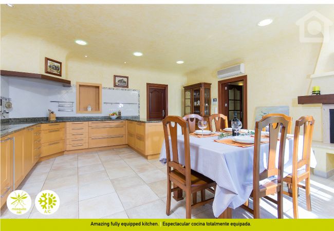 Cette villa de luxe se distingue par la grande qualité de sa construction, de son mobilier et de ses installations. L'intérieur de la résidence vous surprendra par la spaciosité de ses chambres, salons et surtout par sa cuisine immense. Ses 6 chambres disposent de leur propre salle de bain, 4 d'entre elles en suite. Toutes les chambres, la salle à manger et la cuisine sont équipées de la climatisation. À l'extérieur, vous profiterez de plusieurs espaces parfaitement aménagés : deux salles à manger extérieures, zone de barbecue, terrasse chill-out couverte, un beau kiosque dans le jardin, zone de transats et pelouse près de la piscine, etc. La piscine est clôturée pour la protection des plus jeunes de la maison.