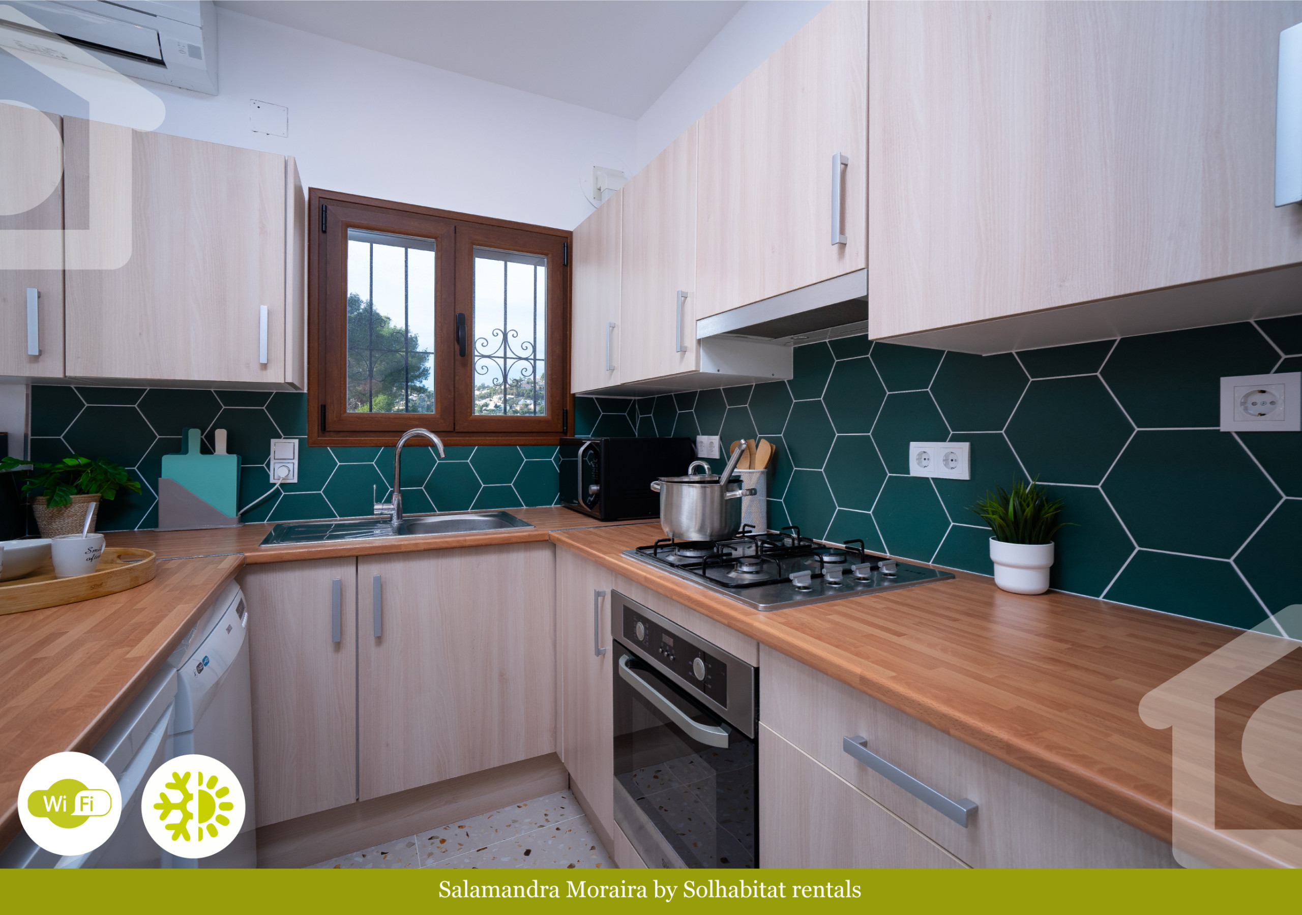L'intérieur de la maison est conçu pour offrir un séjour agréable. Il dispose de la climatisation dans toutes les pièces, idéal pour maintenir une température agréable pendant les journées les plus chaudes. La cuisine américaine moderne et entièrement équipée, avec les appareils nécessaires tels que le lave-vaisselle, le four, le micro-ondes et la cafetière, permet de préparer facilement n'importe quel repas. La maison dispose également de 2 salles de bains complètes avec douche et connexion WiFi, pour que vous puissiez toujours rester connecté.